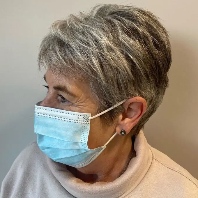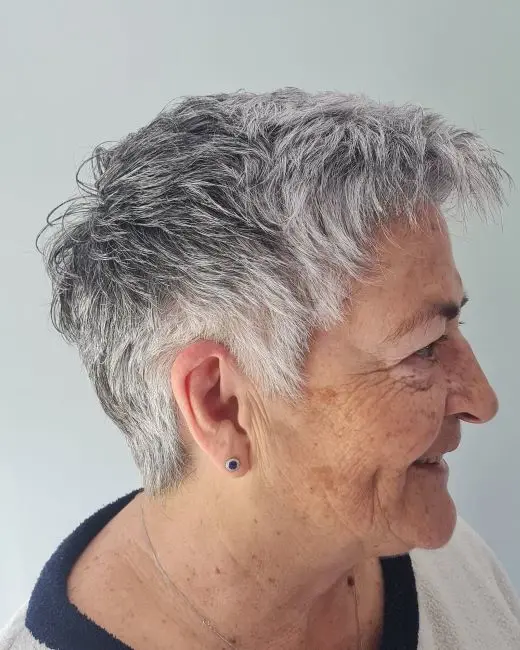 A low-maintenance pixie for gray hair is a fantastic choice for women in their 70s. Incorporating dry cutting and added movement into the choppy layers enhances the texture and ensures the shape remains fresh for longer.