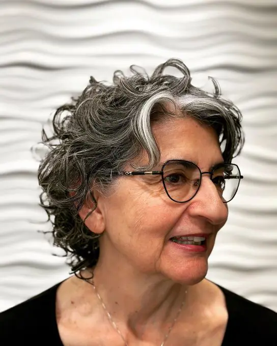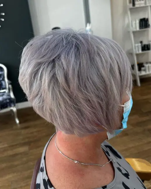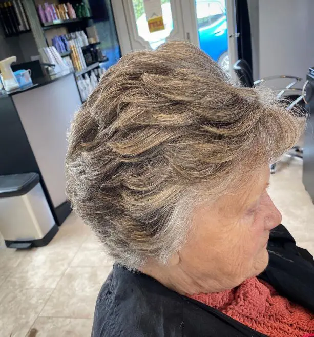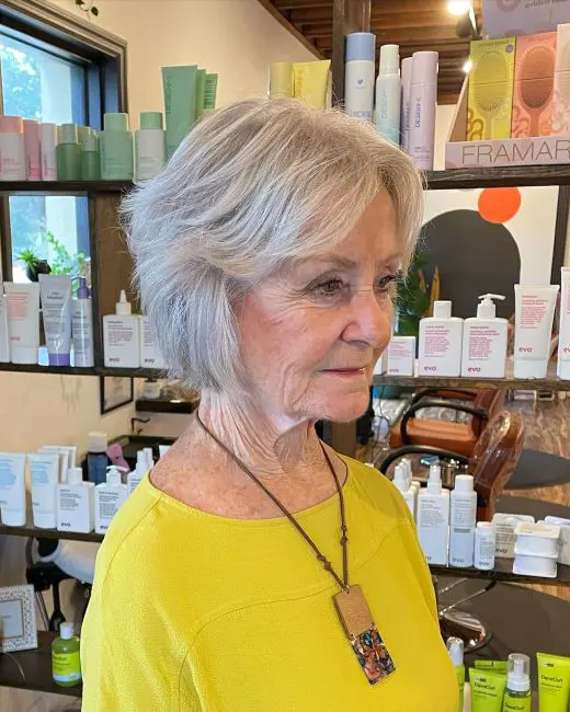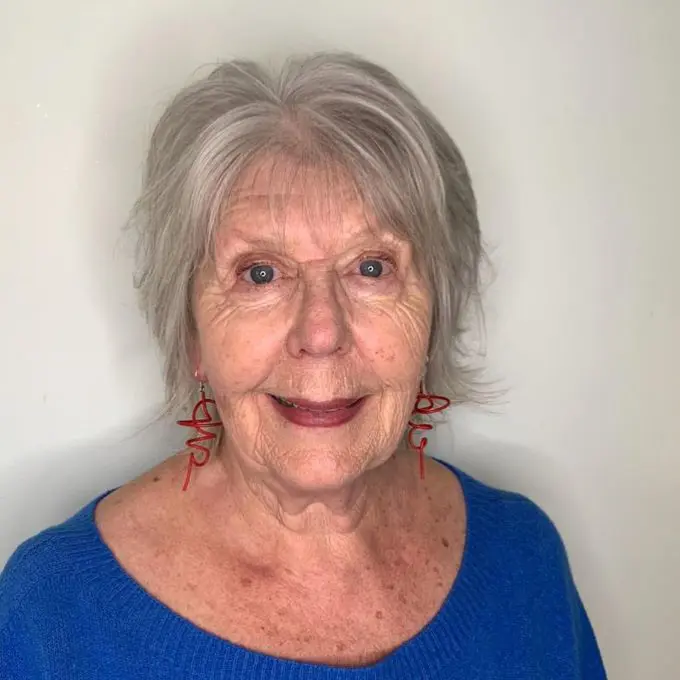 Silver and sassy choppy layers are a fantastic choice for women over 70. This style embraces natural aging hair, letting its true beauty shine.