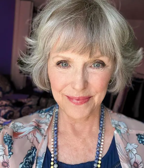A choppy short bob with side bangs offers a stylish, modern twist for women in their 70s. This haircut blends the timeless appeal of a classic bob with texturized layers for a youthful and dynamic vibe.