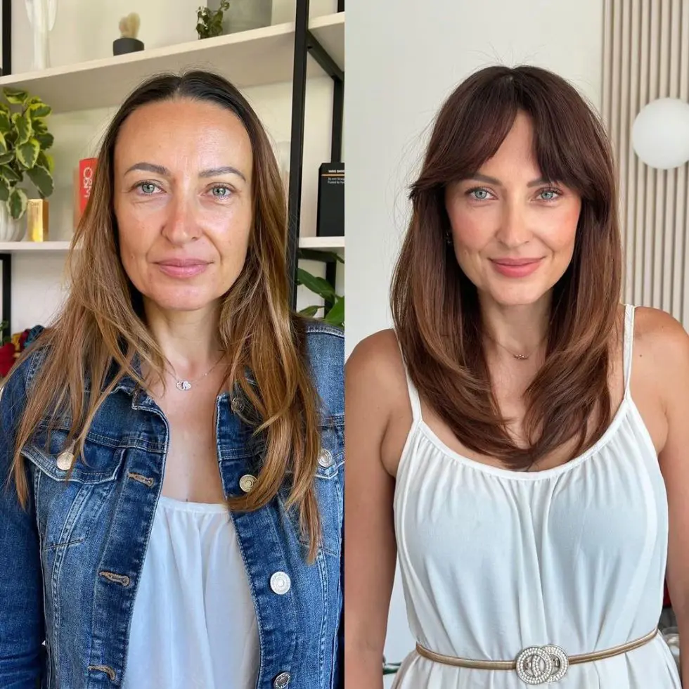 Plus, adding bangs that are cut to frame the face gives you a more sculpted look.