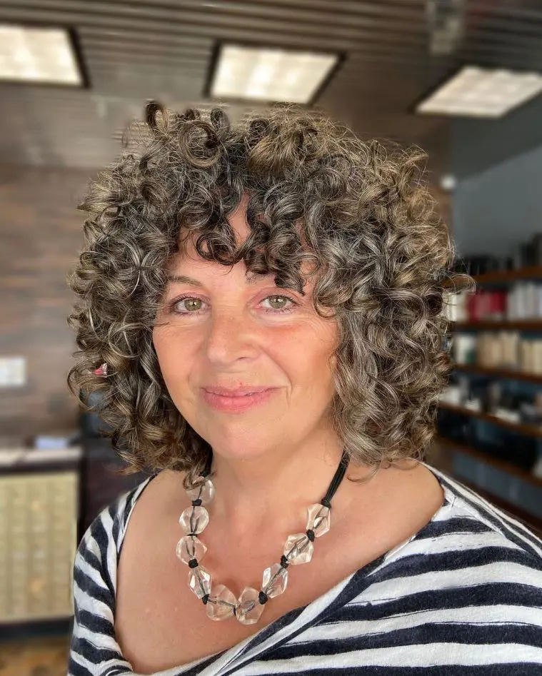 This curly hairstyle looks good on everyone but is particularly beneficial for older women as it adds a youthful touch without being overly dramatic.
