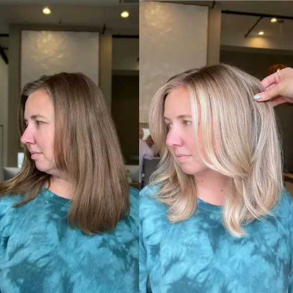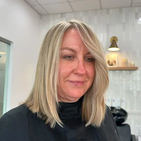 Regardless of the color, this hairstyle adds beautiful contrast and highlights the different hues in your blonde, giving the hair a multi-dimensional effect that appears both natural and polished.