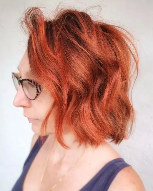Warm up your look with a tousled copper bob. This style adds fullness and volume while keeping things effortlessly chic. Copper shades bring a vibrant glow, reflecting light beautifully and adding depth to your hair.