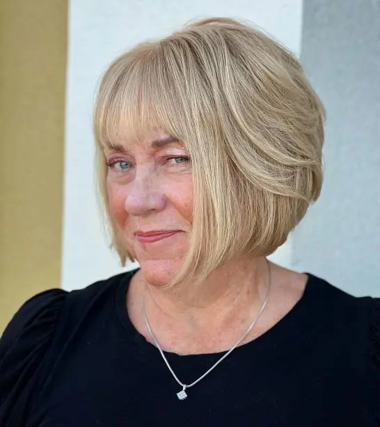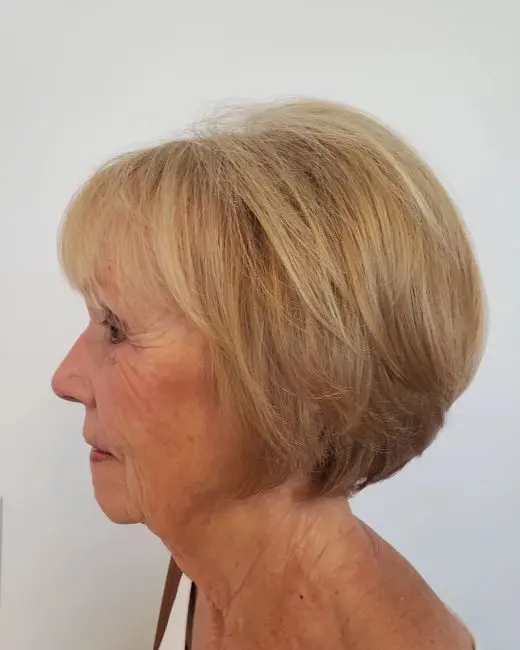 A classic bob for older women creates a youthful look while being easy to style and maintain. Layers and side fringe help the hair lay smoothly, keeping it off the face.