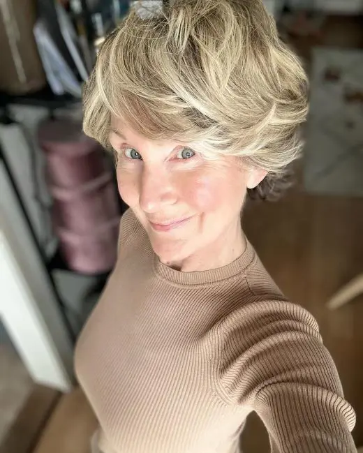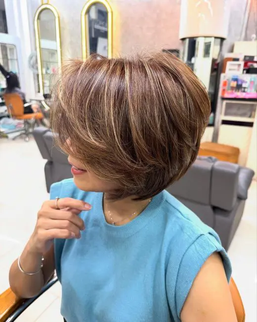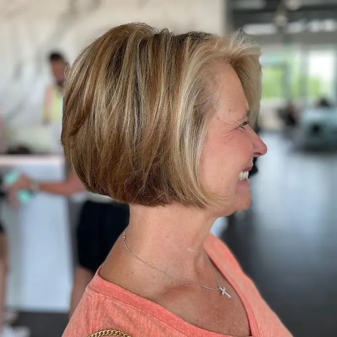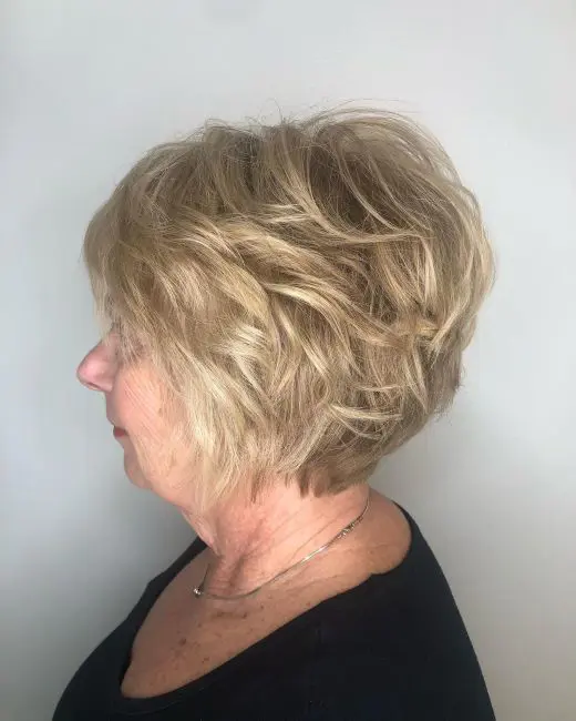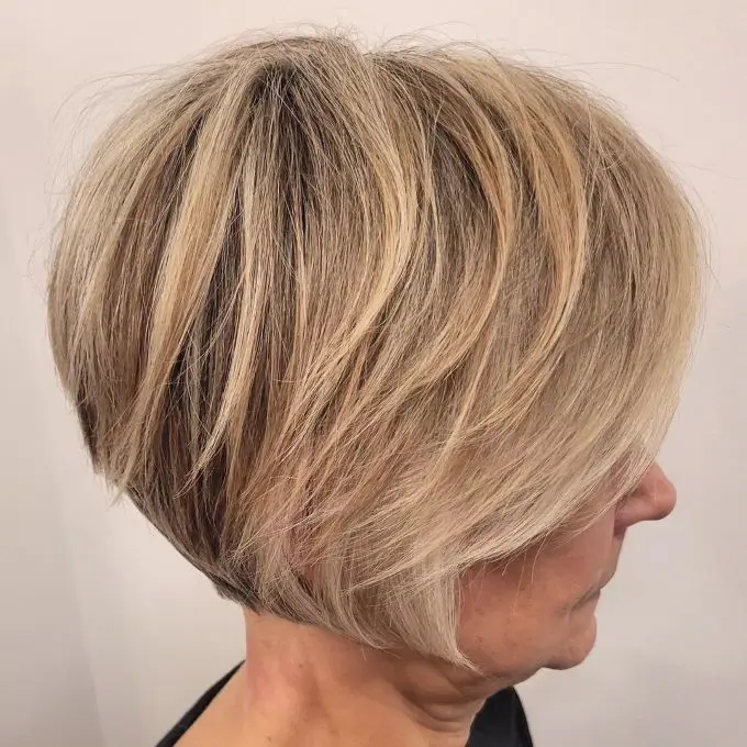 This short bob with feathered layers is perfect for older women wanting a youthful, voluminous look. The feathered layers add movement and lift, making it ideal for fine to medium hair.