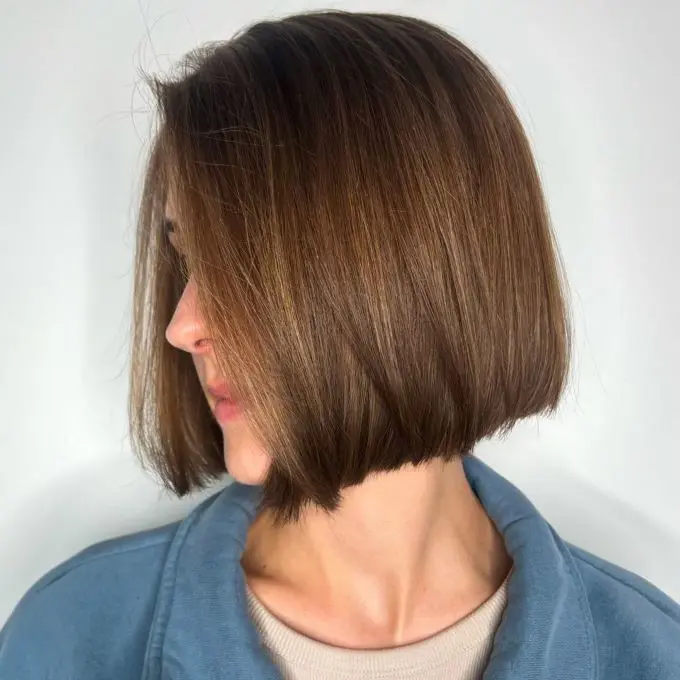 A blunt bob for women with short hair features minimal to no layers and a precise cut. Stylish and versatile, this haircut suits various face shapes and hair textures, especially straight hair, offering several styling options.